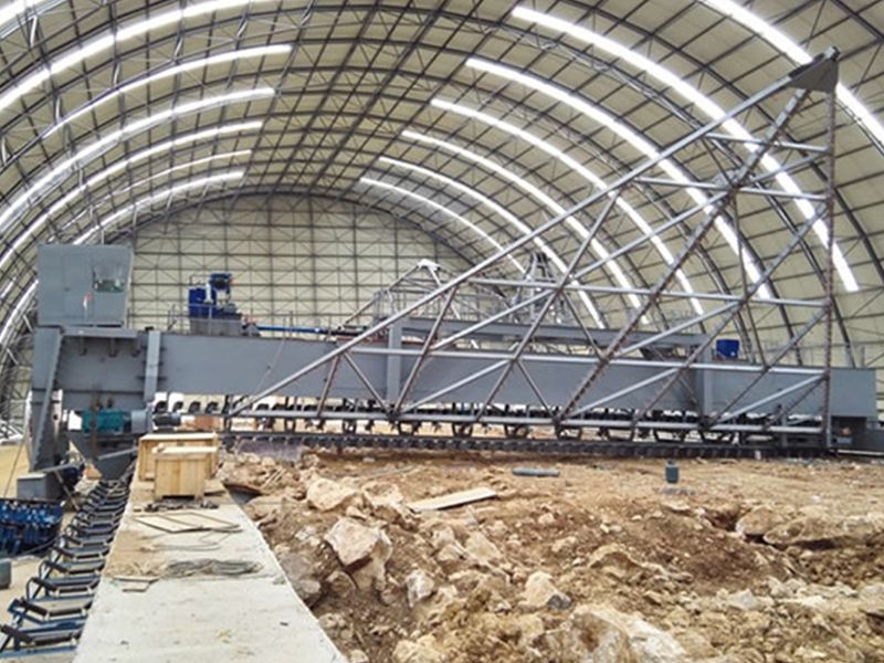 Мостовой реклаймер - система складирования, разработанная для выгрузки материала из штабеля в продолжительном и эффективном режиме, имеет производительность при выгрузке из штабеля 1100 тн/ч. Мостовой скребковый реклаймер позвляет осуществлять продолжительные работы по транспортировке, погрузке и выгрузке, перемешиванию сыпучих материалов, такие как уголь, руда и химическое сырье. Данная эффективная система хранения и транспортировки широко используется в тепловых электростанциях, заводах по производству строительных материалов, цементных заводах, шахтах, портовых терминалах, железной и стальной металлургии, химической индустрии, угольных электростанций, коксогазовых заводах и других площадках.